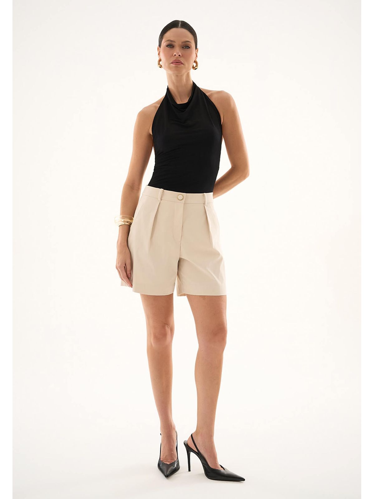 Bermuda em alfaiataria moderna com modelagem elegante e versátil. Possui bolsos laterais funcionais e fechamento por botão e zíper, garantindo praticidade e excelente caimento. Ideal para compor looks sofisticados com toque contemporâneo.