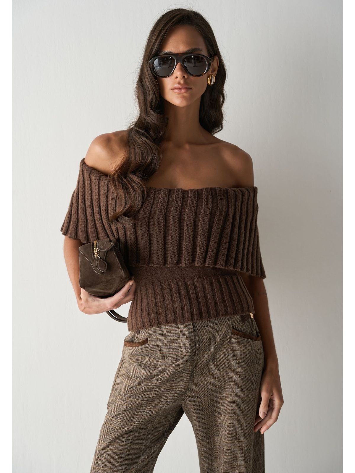 BLUSA DE TRICO OMBRO MARROM