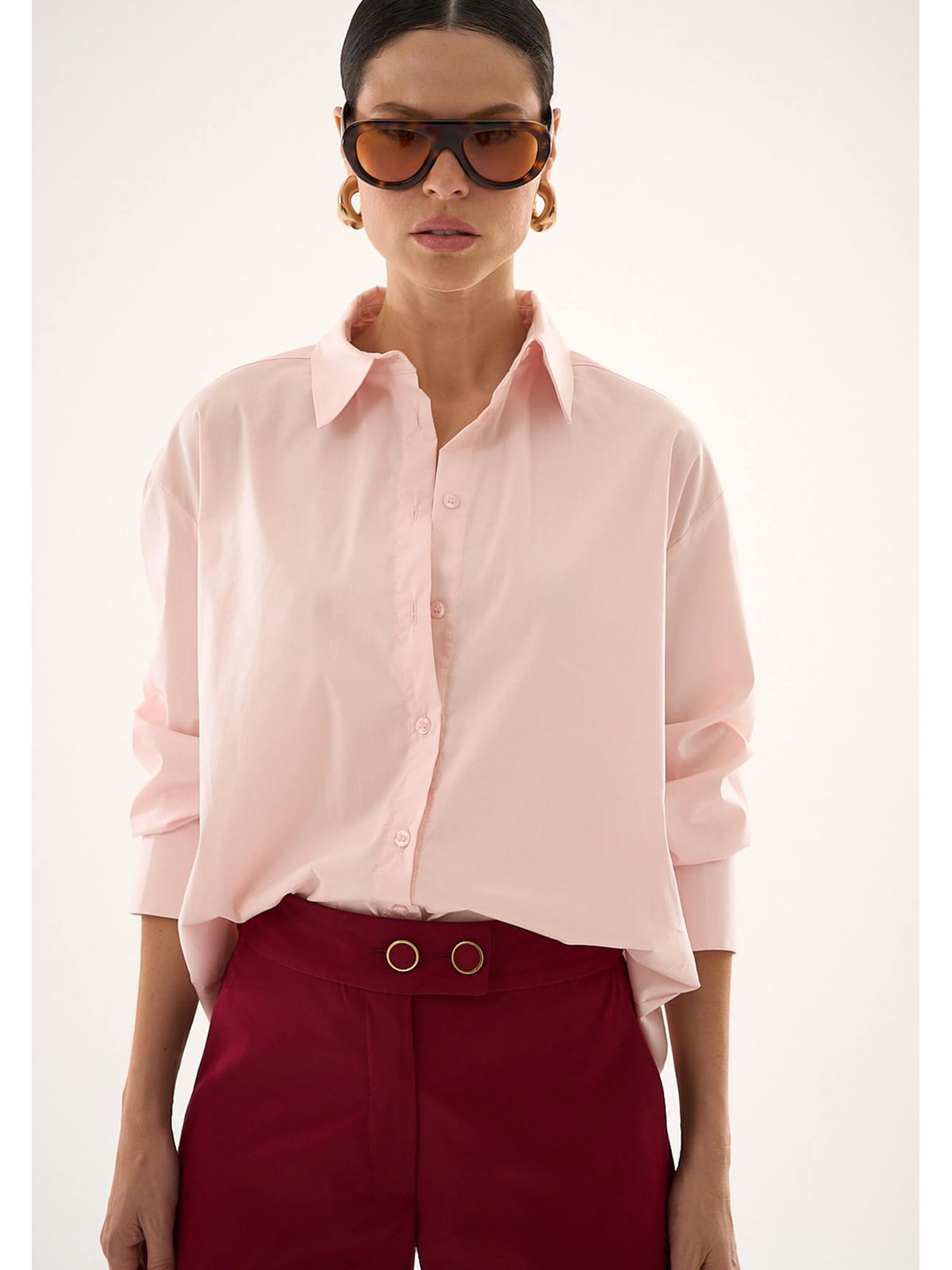 CAMISA EM TRICOLINE COM CINTO ROSA