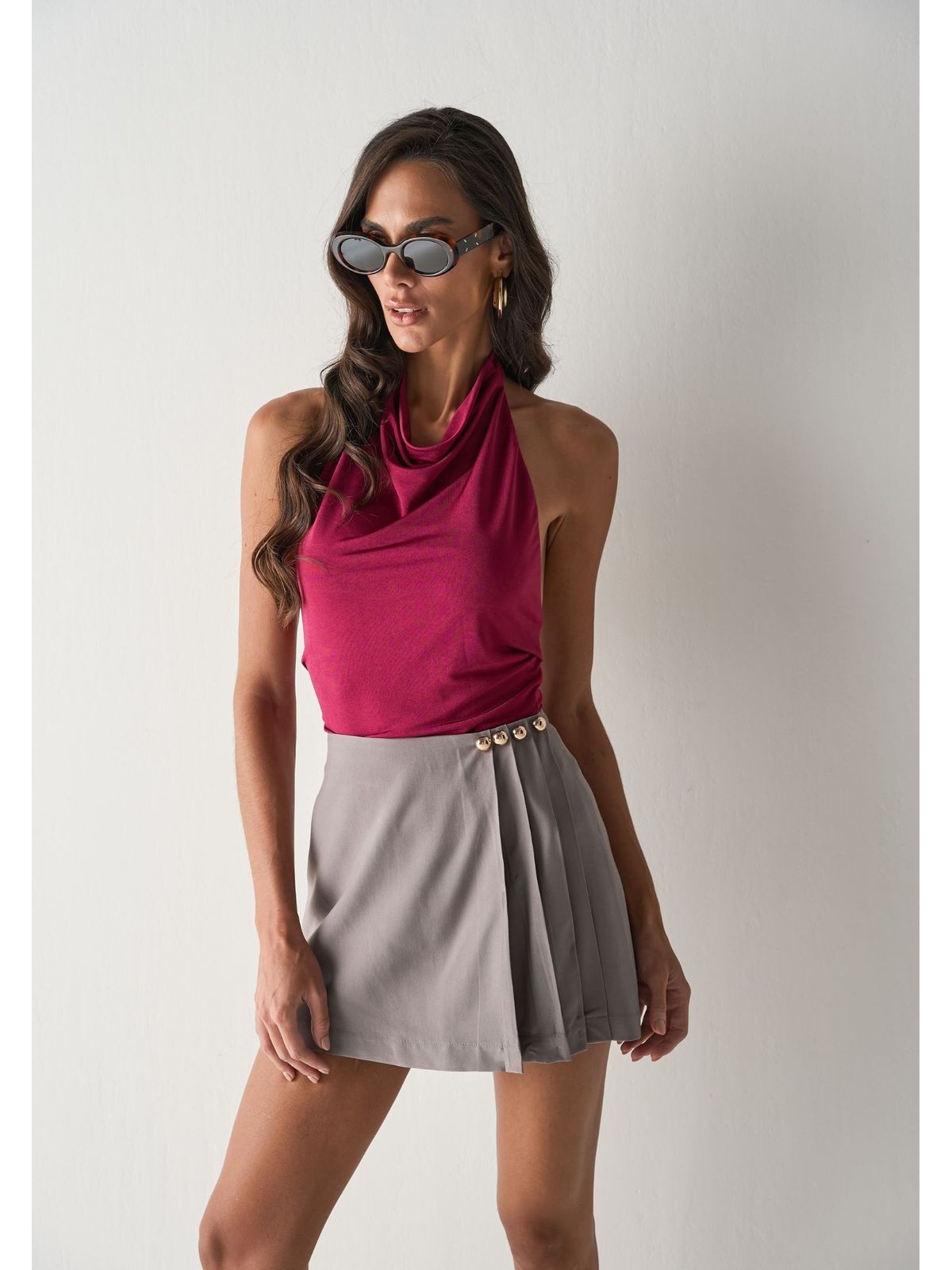 A Saia em alfaiataria plissada une sofisticação e leveza em uma peça cheia de personalidade. O plissado traz movimento e fluidez ao caminhar, enquanto a modelagem estruturada da alfaiataria garante caimento impecável.