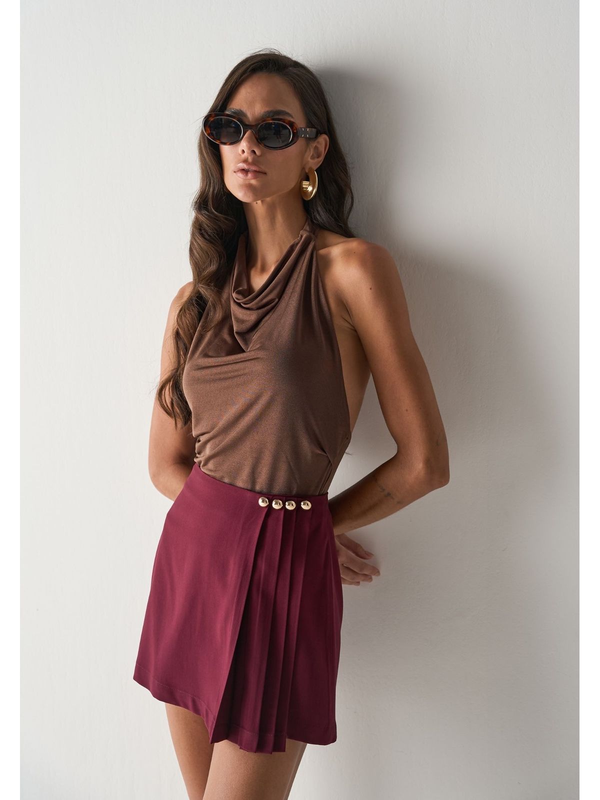 A Saia em alfaiataria plissada une sofisticação e leveza em uma peça cheia de personalidade. O plissado traz movimento e fluidez ao caminhar, enquanto a modelagem estruturada da alfaiataria garante caimento impecável.