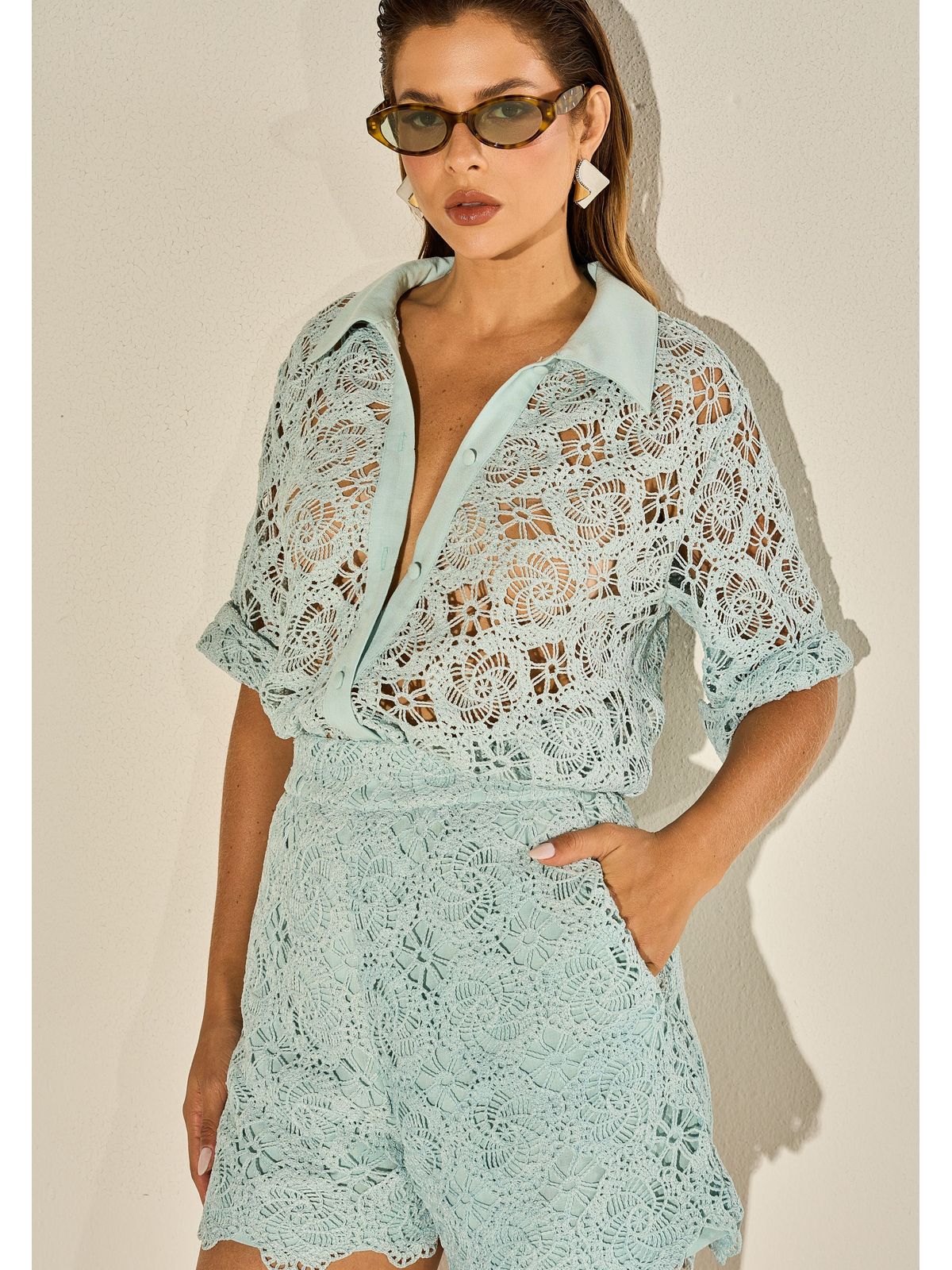 O shorts Patricia em guipure é a escolha ideal para compor looks delicados e cheios de estilo. Confeccionado em renda guipure, possui forro em todo o comprimento, garantindo conforto e segurança ao vestir. O leve detalhe em renda na barra adiciona um toque de charme e feminilidade à peça. Com bolsos laterais funcionais, une praticidade e elegância em um só modelo.
