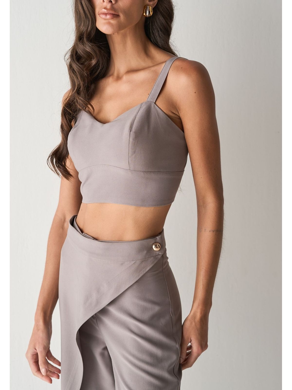 O Top em alfaiataria combina acabamento sofisticado e caimento perfeito em uma peça moderna e versátil. Com alças reguláveis, proporciona ajuste personalizado, enquanto o fechamento por zíper garante praticidade e segurança. As costas com lástex oferecem elasticidade e conforto, adaptando-se ao corpo sem perder a elegância.