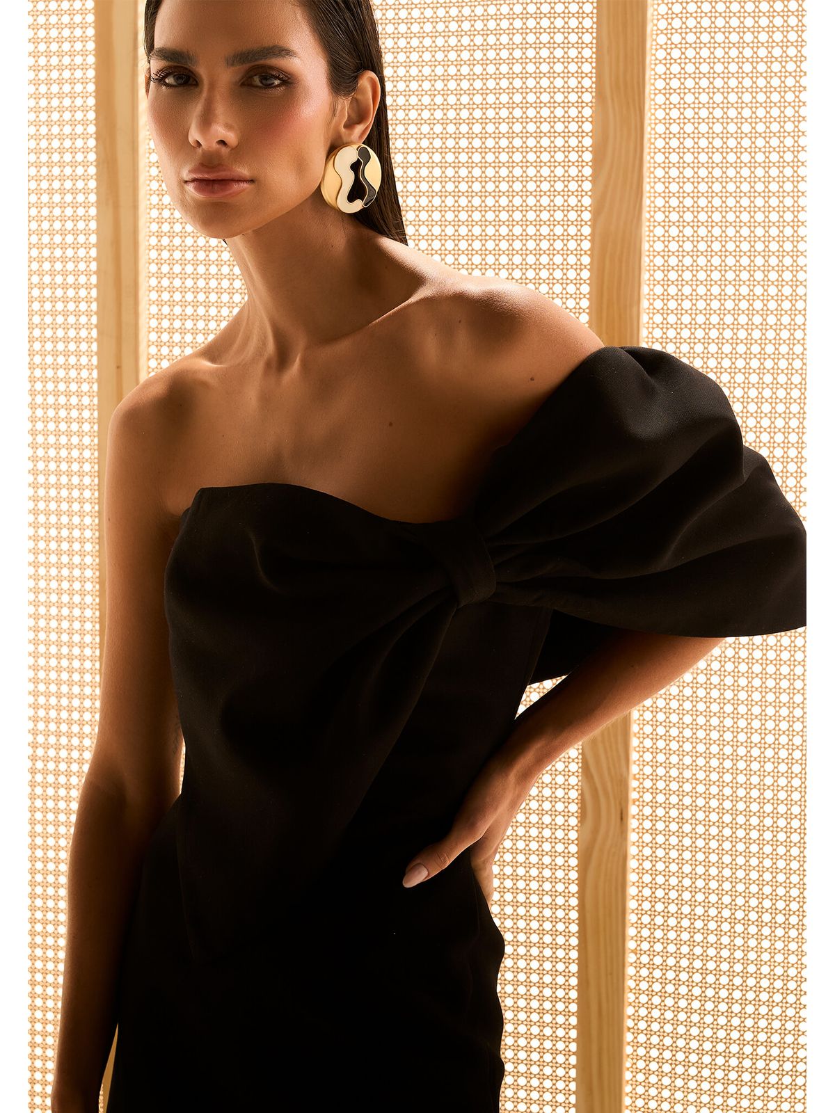 Vestido Curto com Laço no Ombro traz um toque feminino e sofisticado ao seu visual. O destaque fica para o laço oversized no ombro, que adiciona charme e um detalhe único à peça.