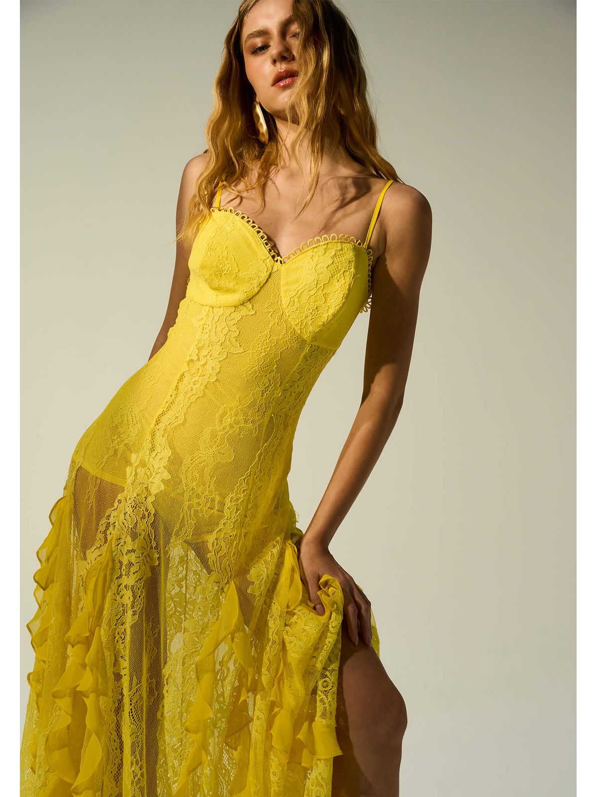 VESTIDO LONGO EM RENDA ANGEL AMARELO