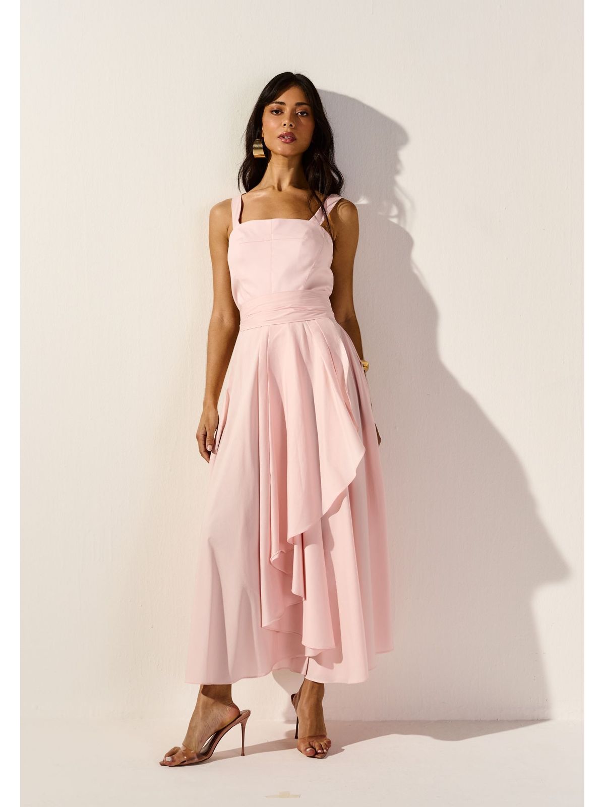 VESTIDO MIDI EM TRICOLINE ROSA